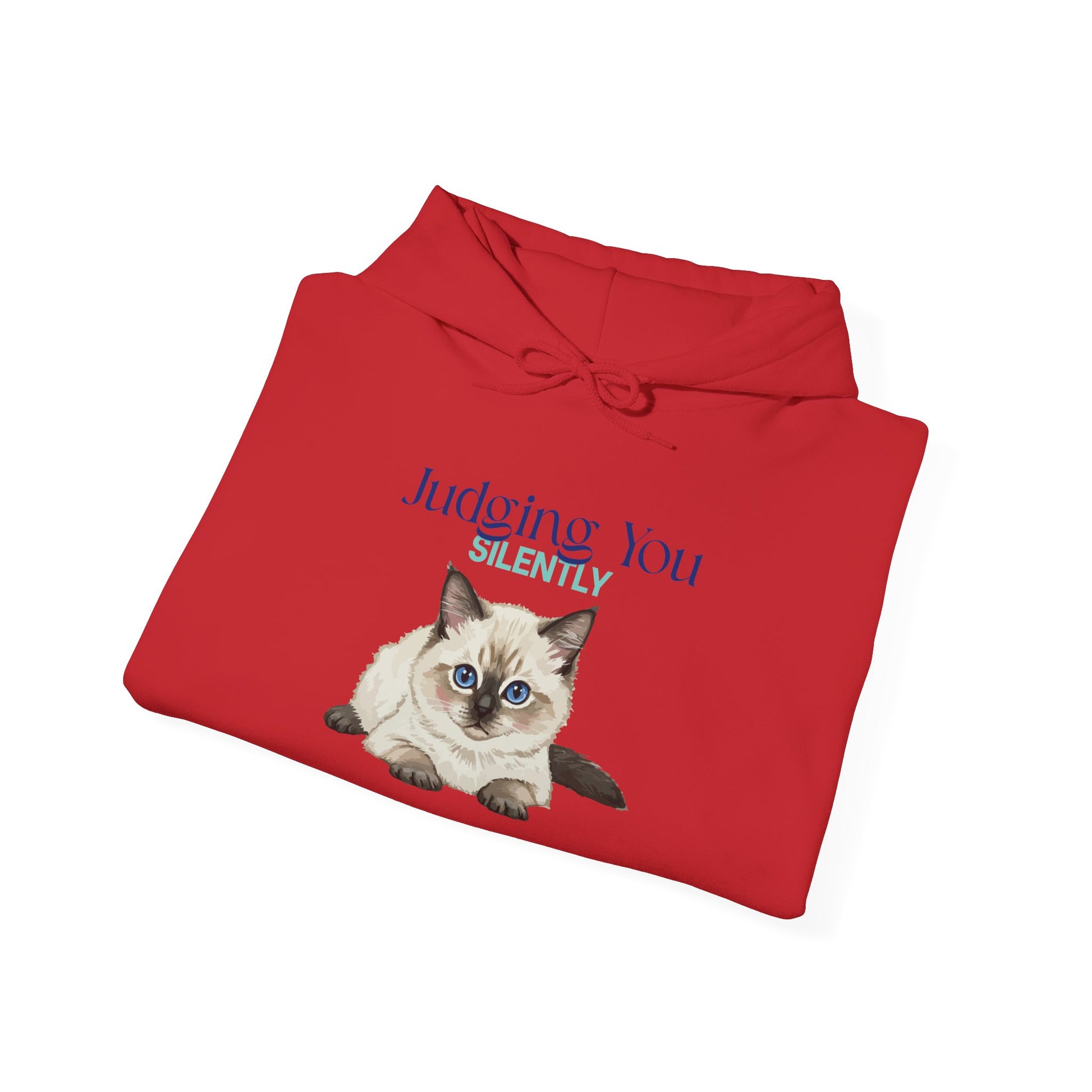 Cat Hoodie – "Judging You Silently" Cute Grumpy Kitten Graphic Hoodie