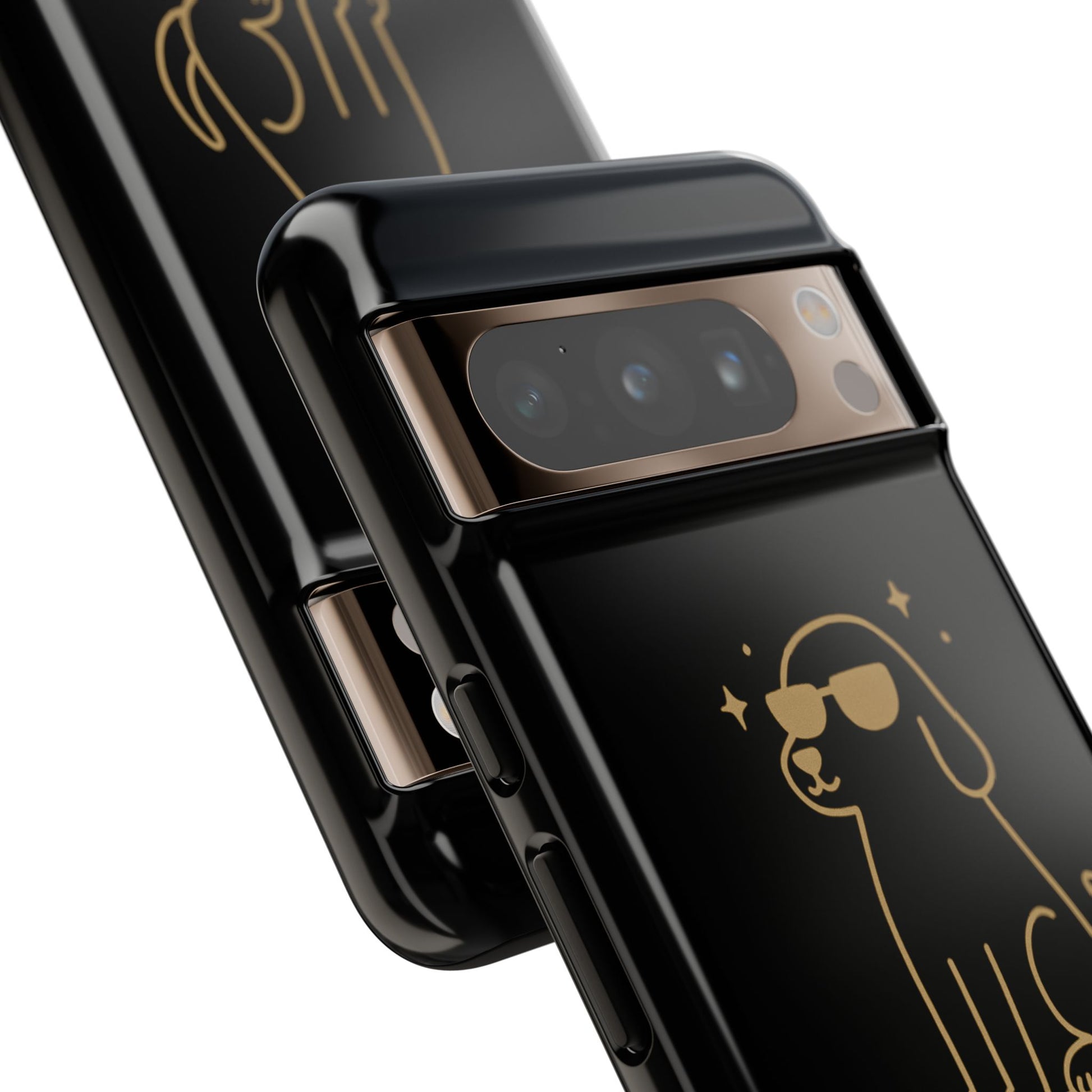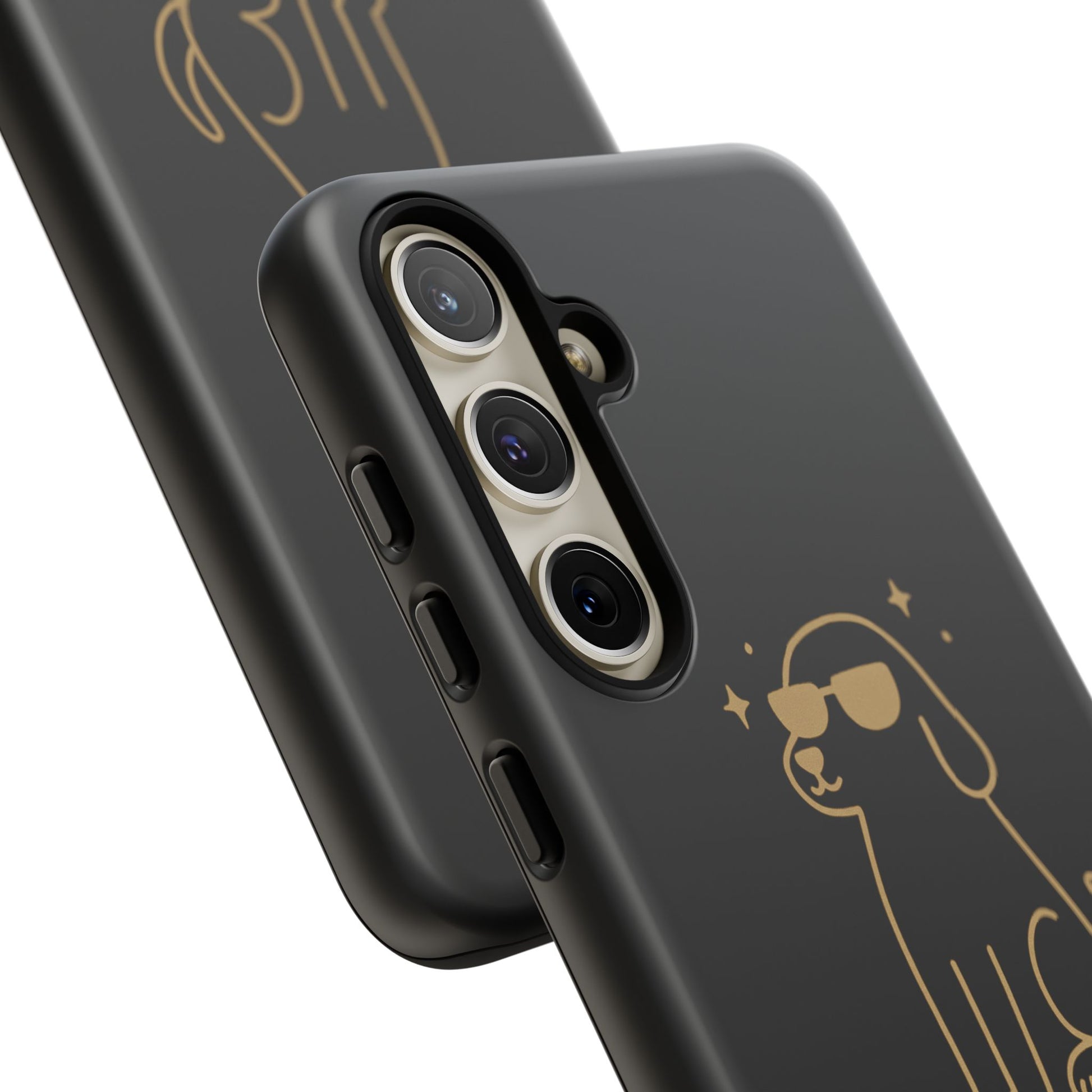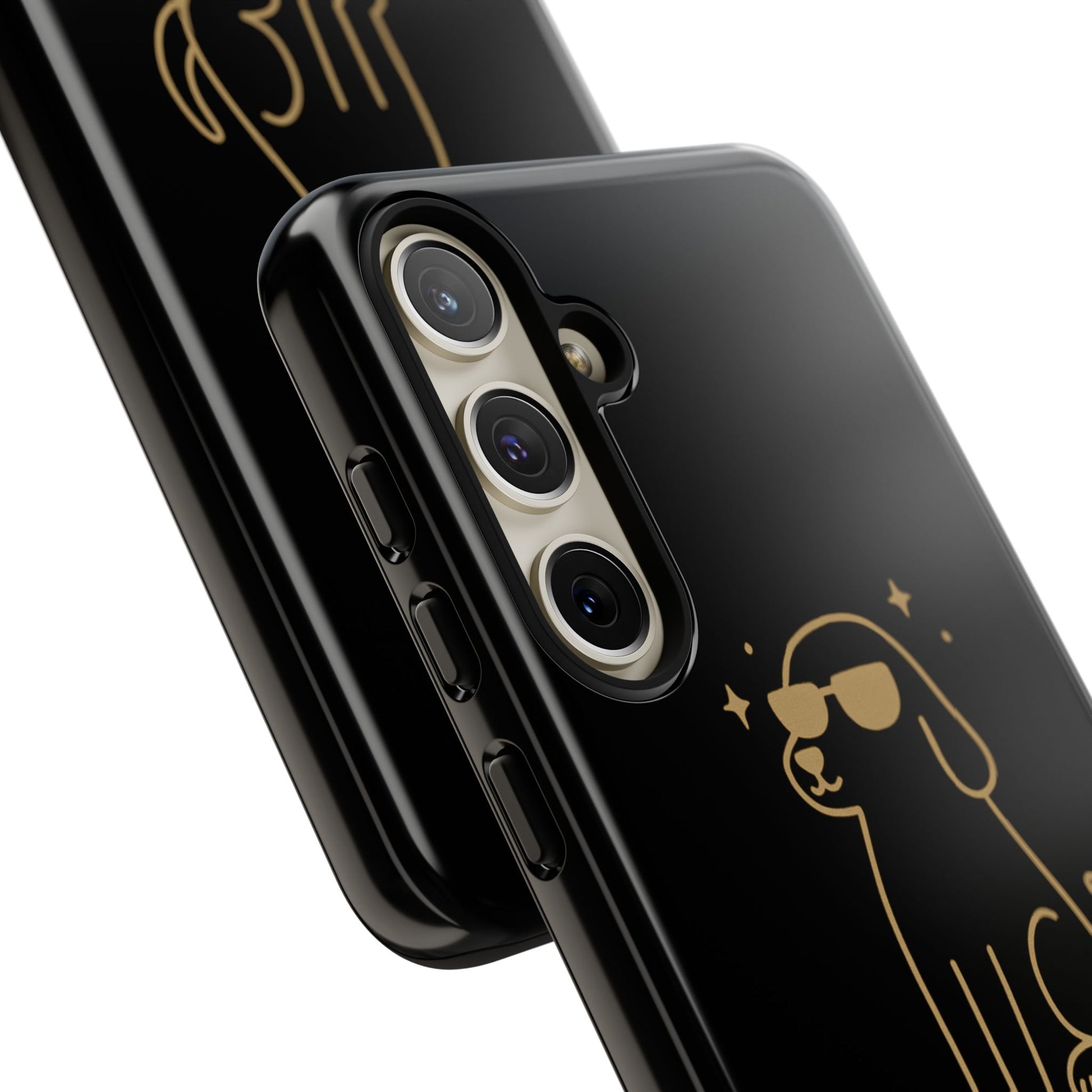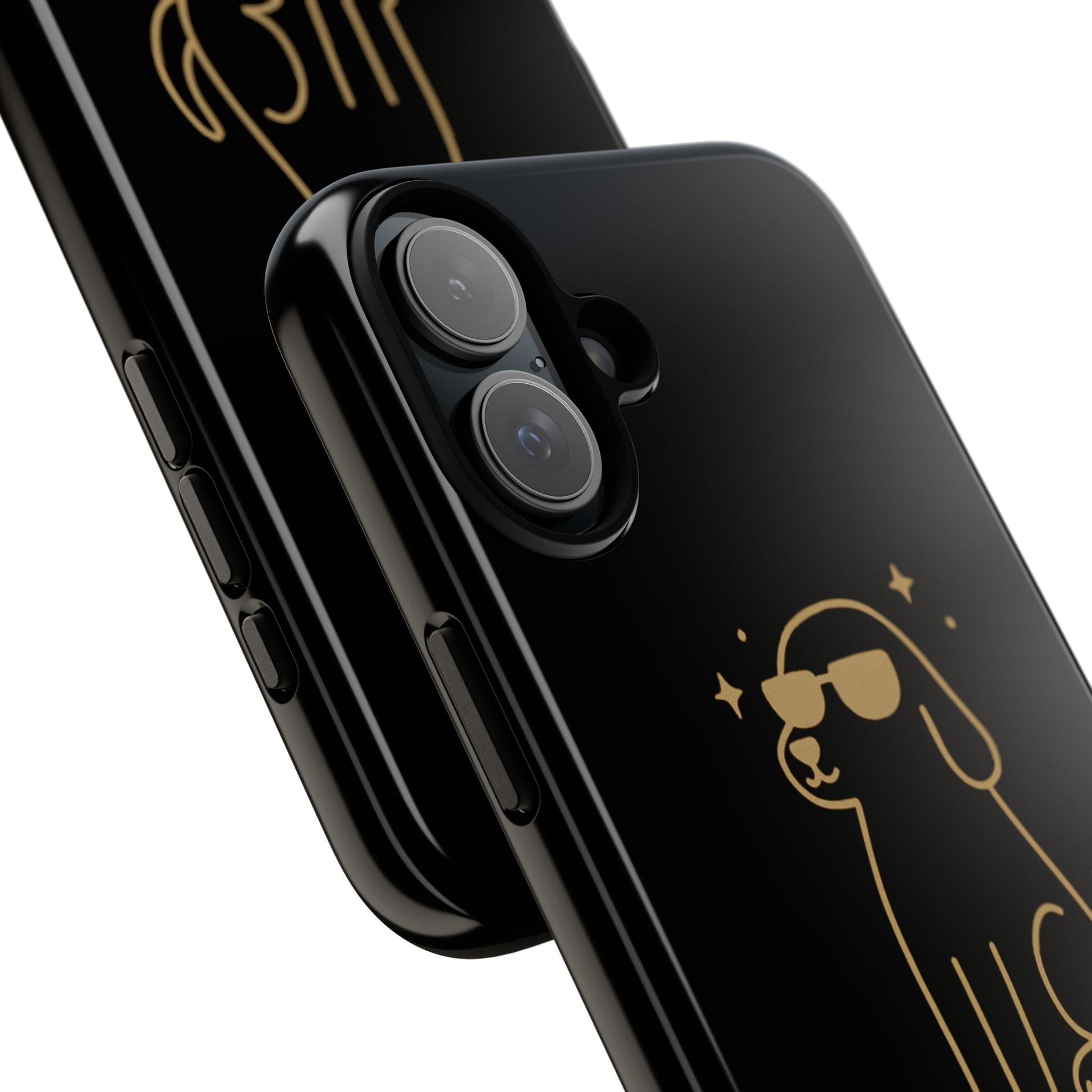 Sleek, protective, and a little bit cheeky — this tough phone case keeps your device safe while showing off low-key personality. The slim dual-layer shell combines a hard polycarbonate exterior with a soft TPU silicone liner that soaks up shocks and resists everyday knocks. A full-wrap 3D print keeps the matte-black background and gold-accent illustration crisp, while UV protection helps the graphic retain its tone outdoors. Clear port openings preserve connectivity and wireless charging works without removing the case.