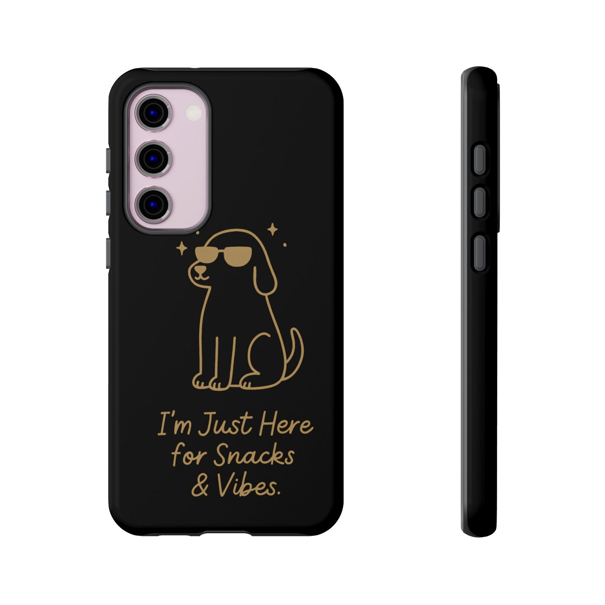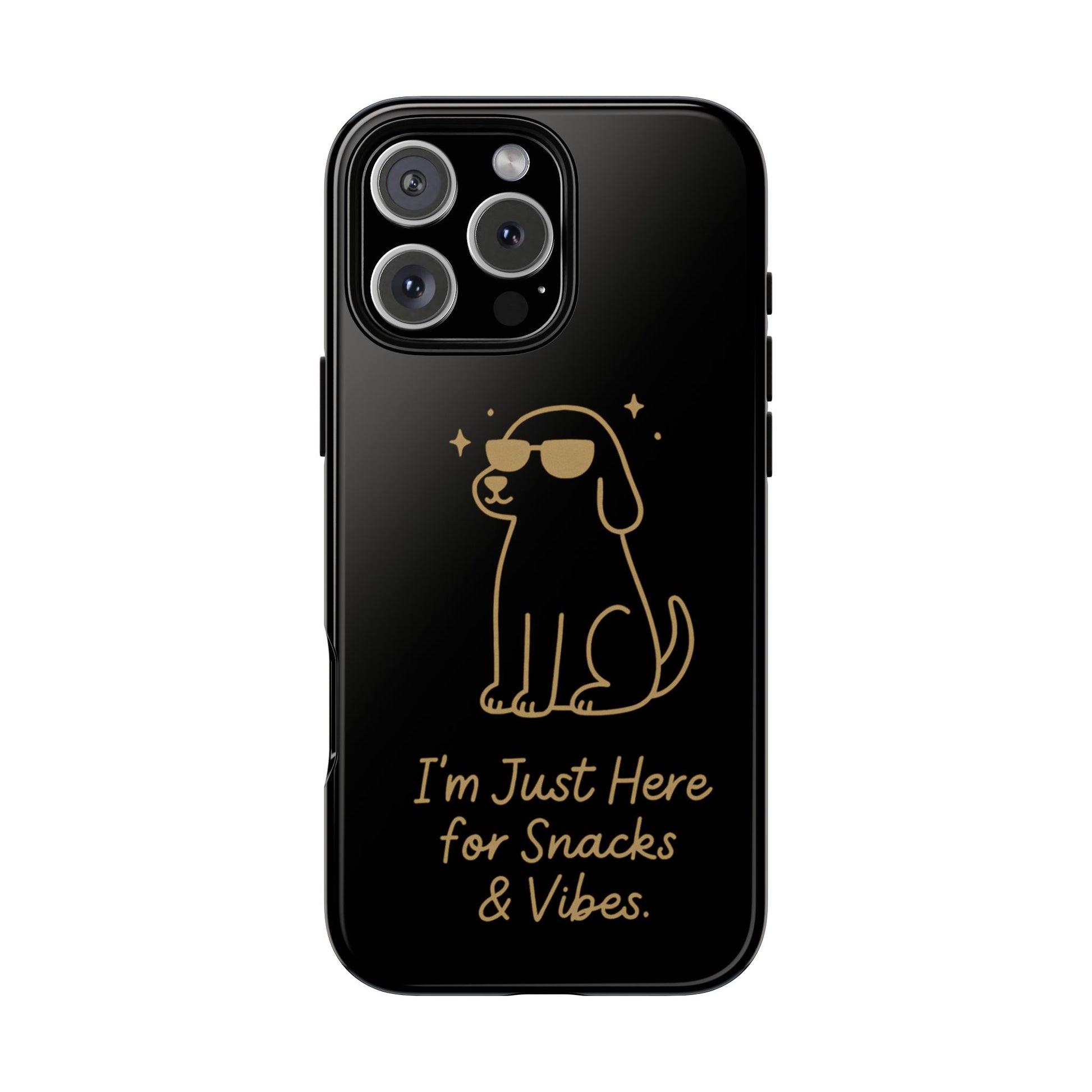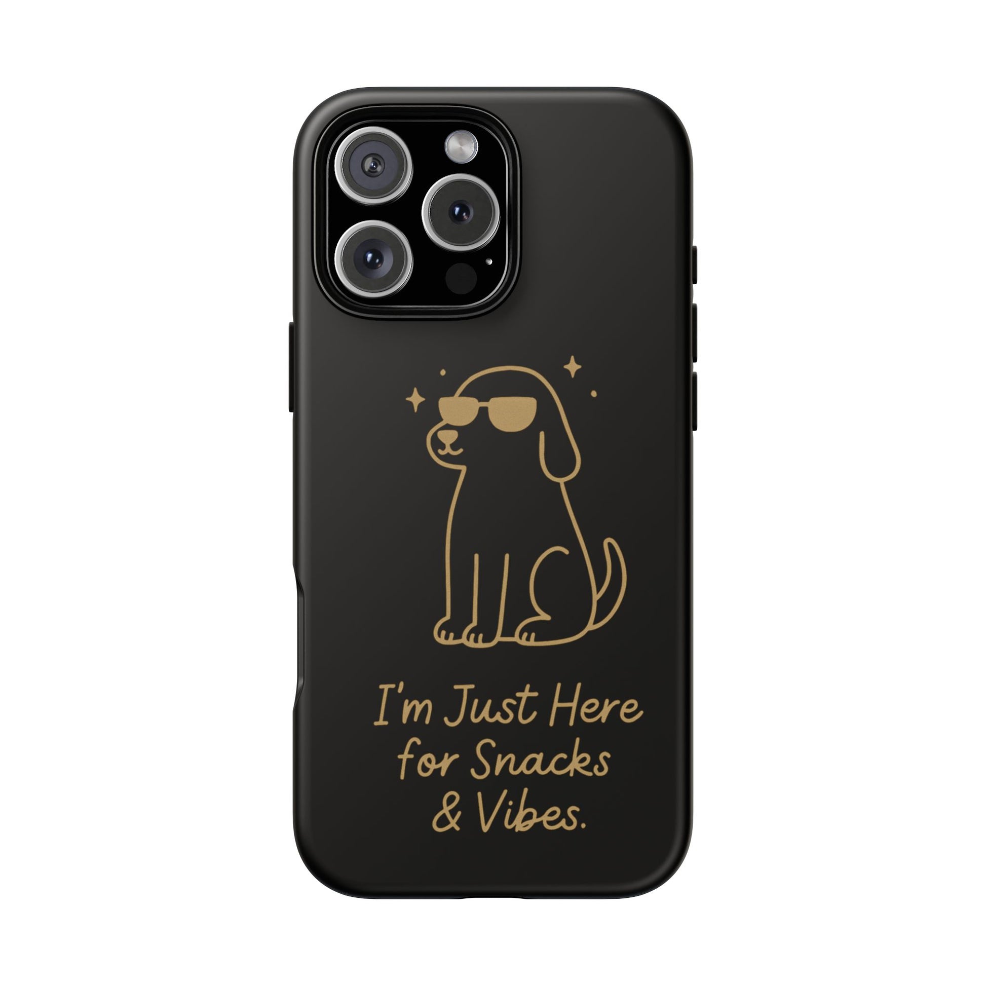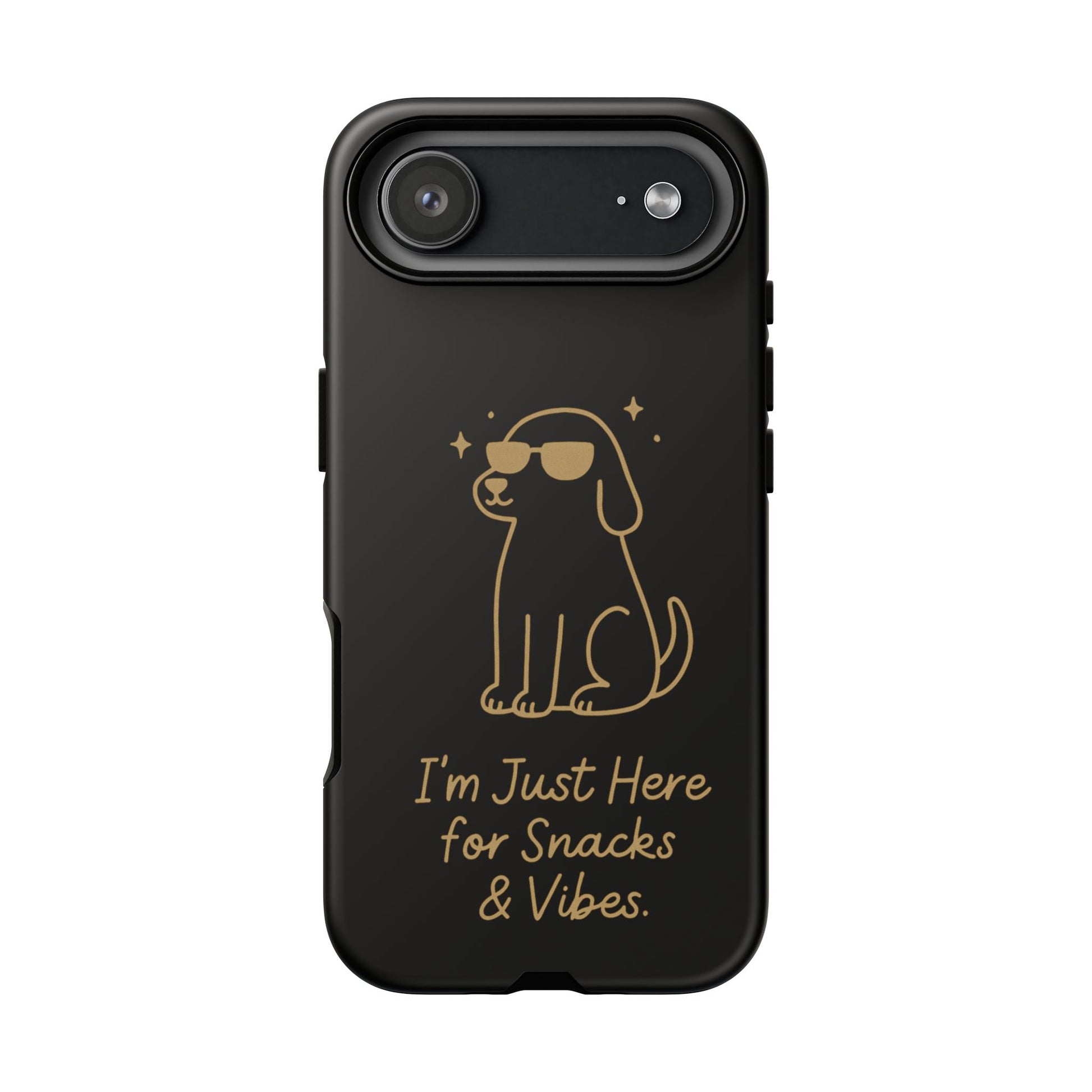 Phone Case — "I’m Just Here for Snacks & Vibes" Cute Dog Design