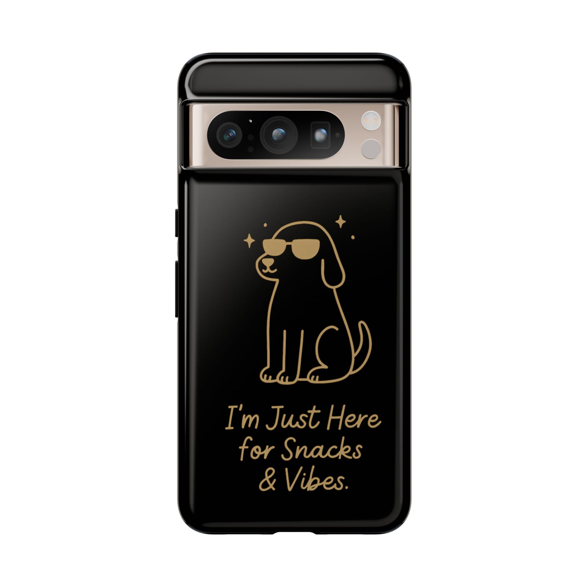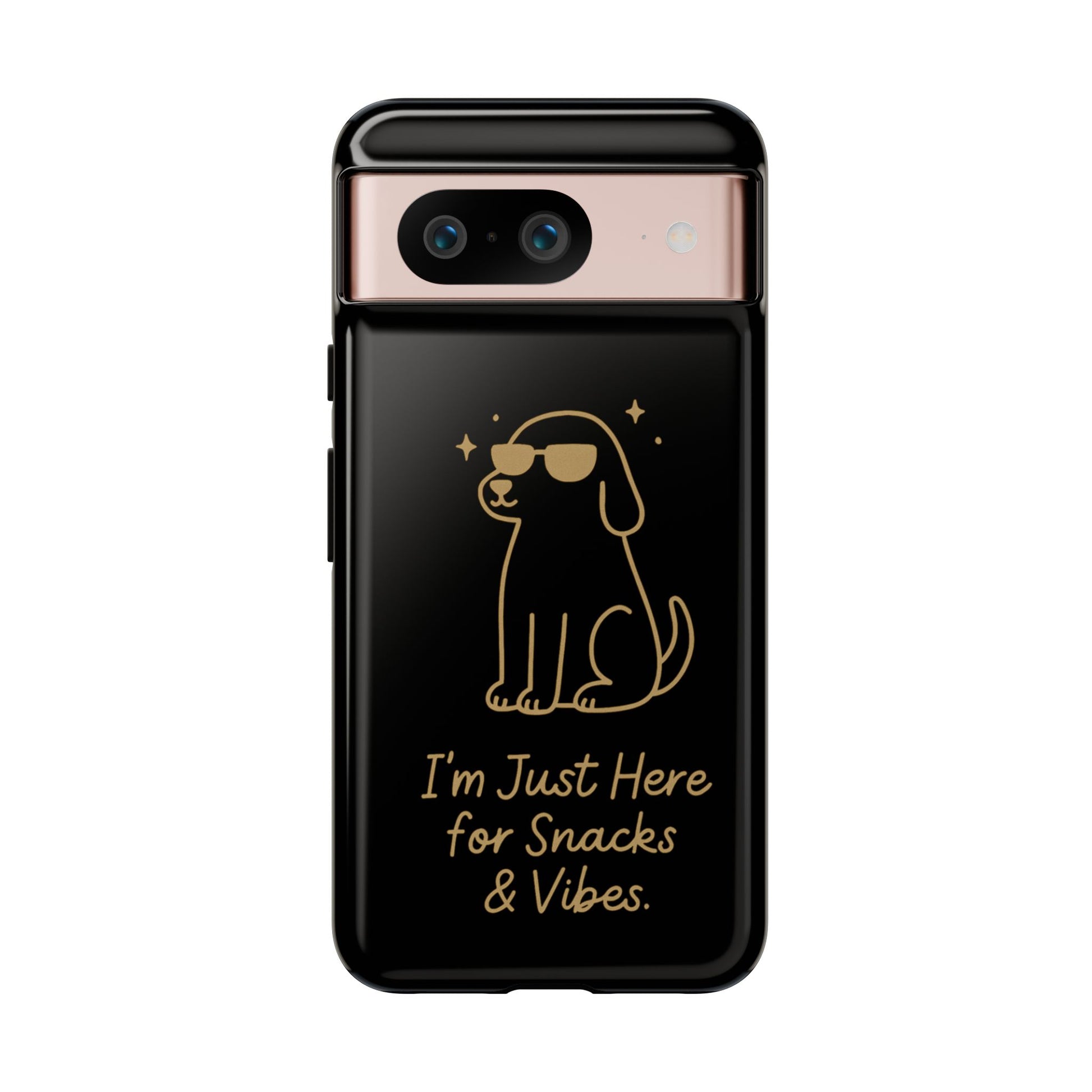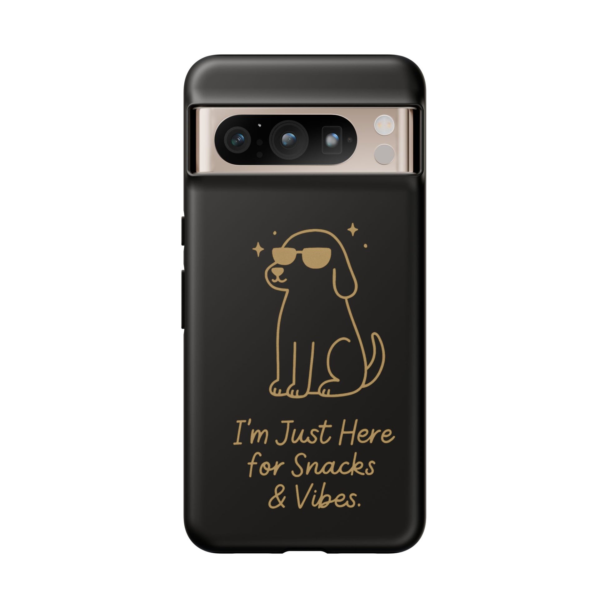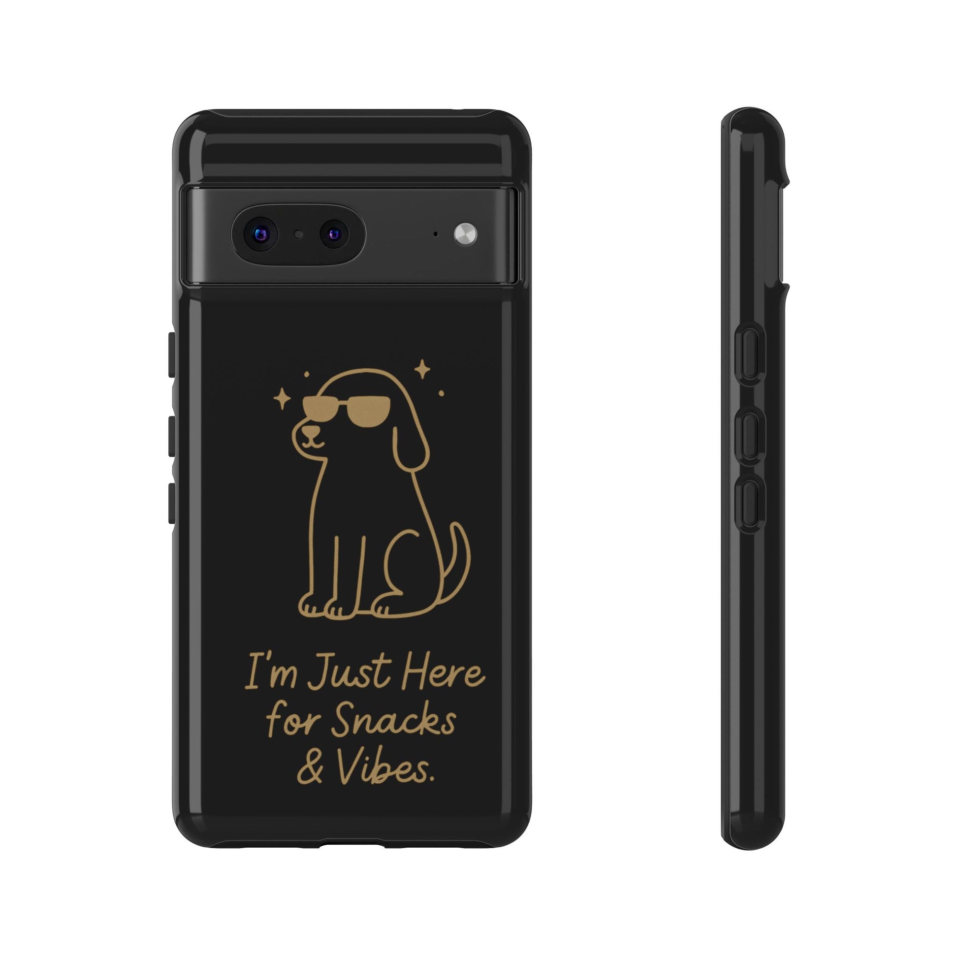Phone Case — "I’m Just Here for Snacks & Vibes" Cute Dog Design