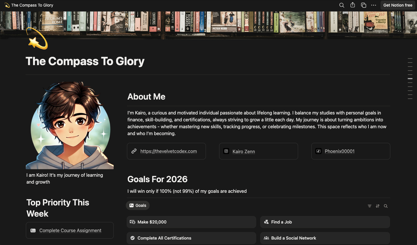 Designed for students and professionals, this template helps you track habits, plan goals, manage tasks, and stay aligned with your personal well‑being, all in one beautifully structured workspace.